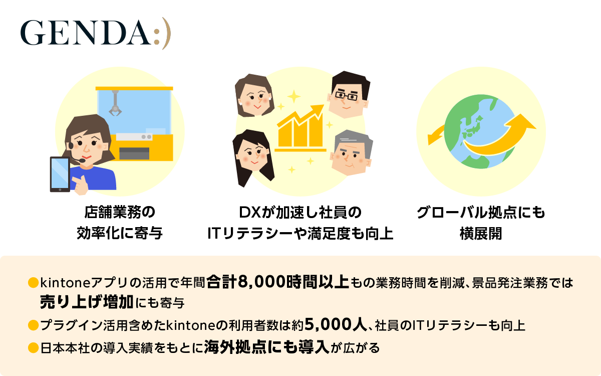 「世界中の人々の人生をより楽しく」をAspiration(大志)として掲げるエンターテイメント企業である株式会社GENDAでは、グローバルに展開する現場と本部をつなぎ合わせる情報基盤の中核としてサイボウズのkintoneを活用している。その経緯について、執行役員 CTO 梶原 大輔氏およびIT戦略部 ITアプリケーションマネージャー 山崎 朝樹氏、同部 寺井 裕介氏にお話を伺った。