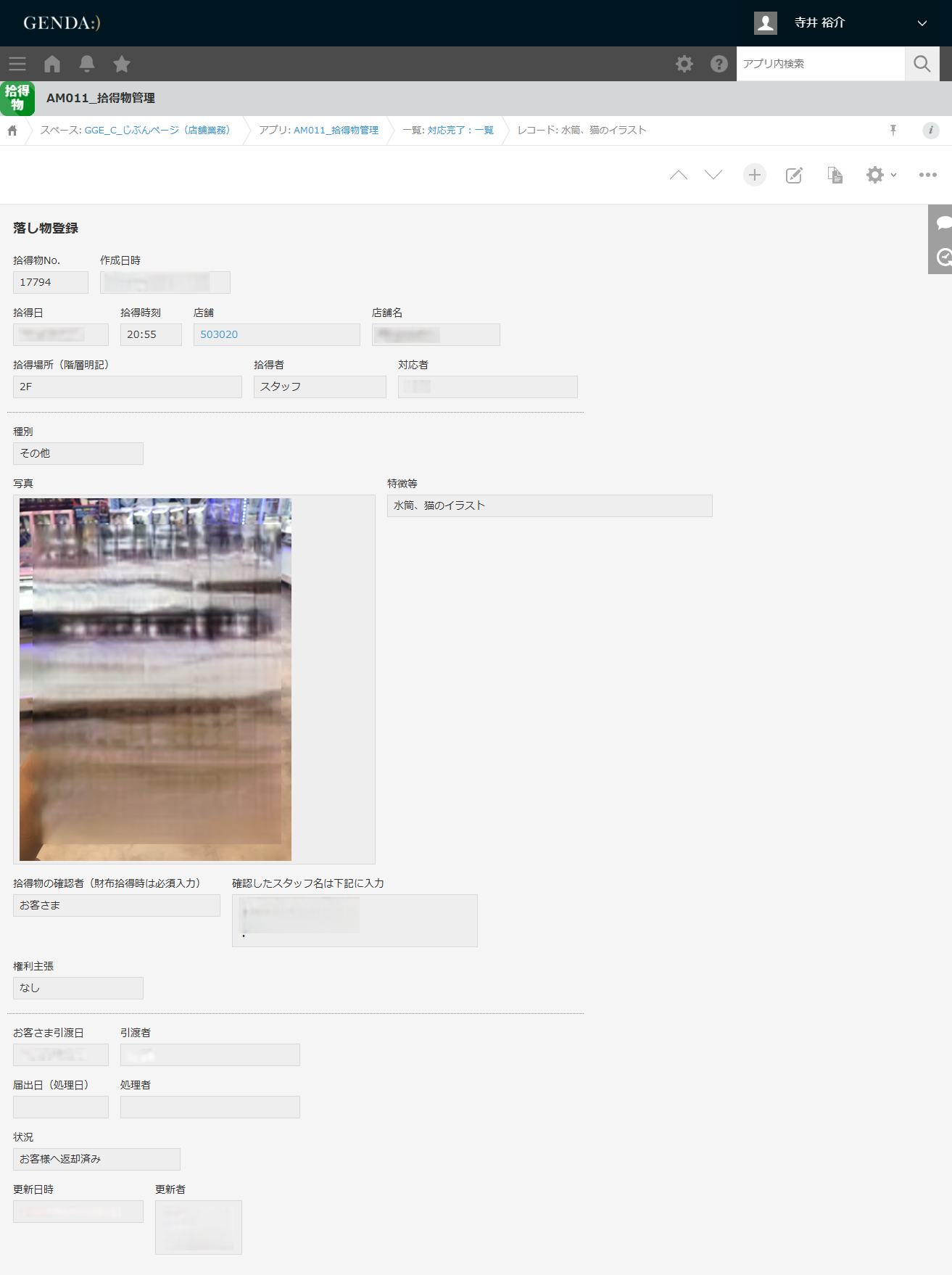 そんな状況下で、kintoneであれば紙やExcelから脱却し、落とし物管理の基盤として現場に負担なく使ってもらえると考えたという。「kintoneならとりあえず使えるのでは、という阿吽の呼吸で使ってみようと考えたのです。おそらくkintoneであれば現場の運用を踏襲しながらシステム化できるのではという期待からでした」と山崎氏は説明する。