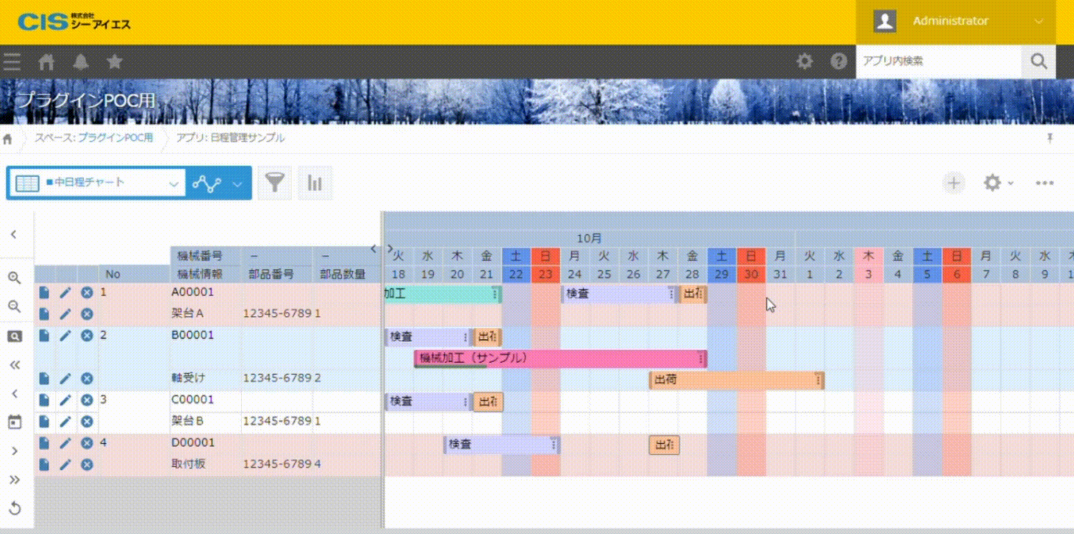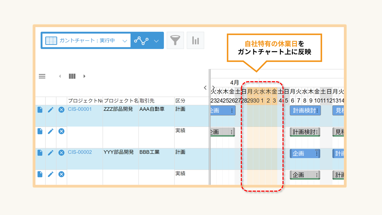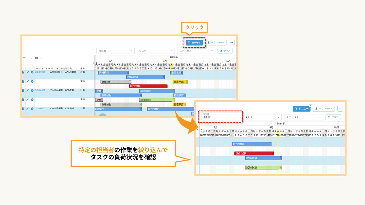 プロジェクトの全体日程、部門別日程、担当者別日程を同一アプリ内で一元管理したい!