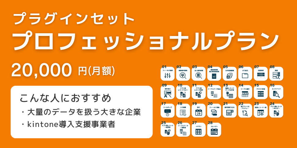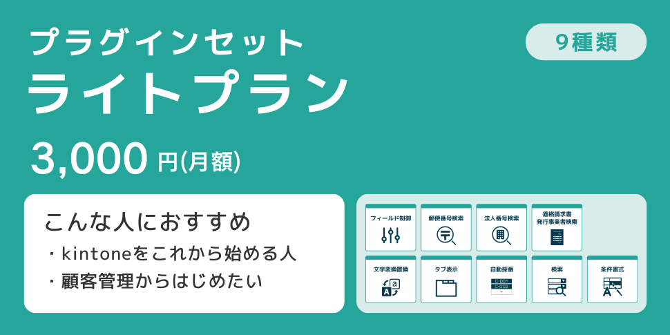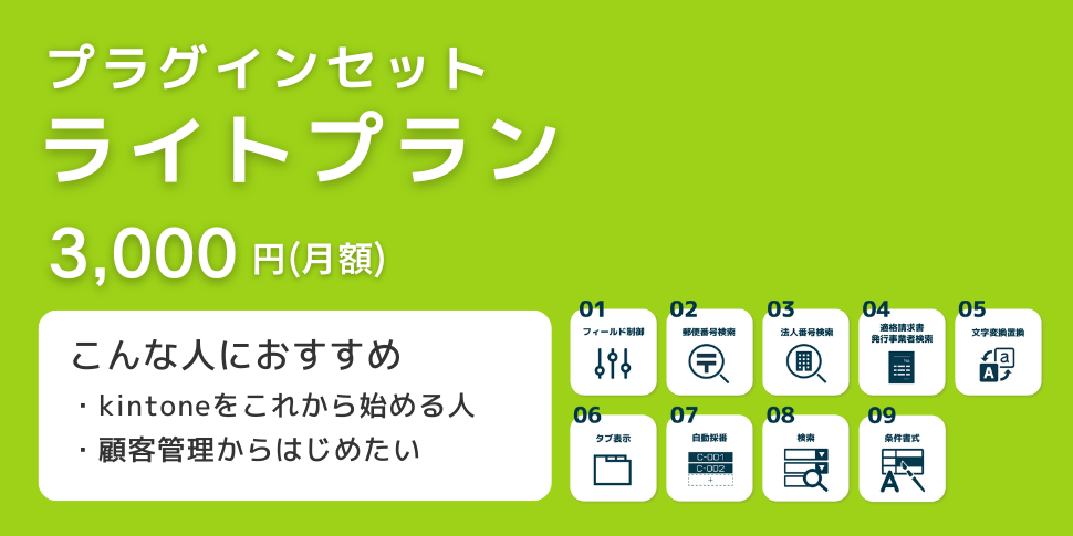 kintoneをこれから始める、または導入したばかりの方や、顧客管理など部分的な用途でkintoneを利用している方にお勧めのプラグインセットです。