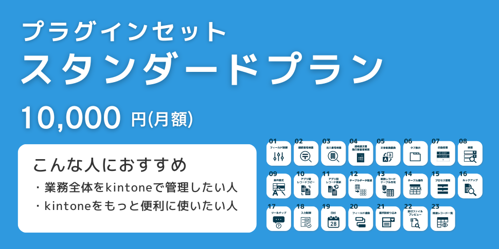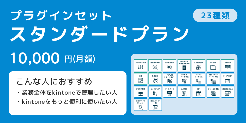業務全体をkintoneで管理している方、特定の課題を抱えている、もっとkintoneを便利に利用したい方にお勧めのプラグインセットです。