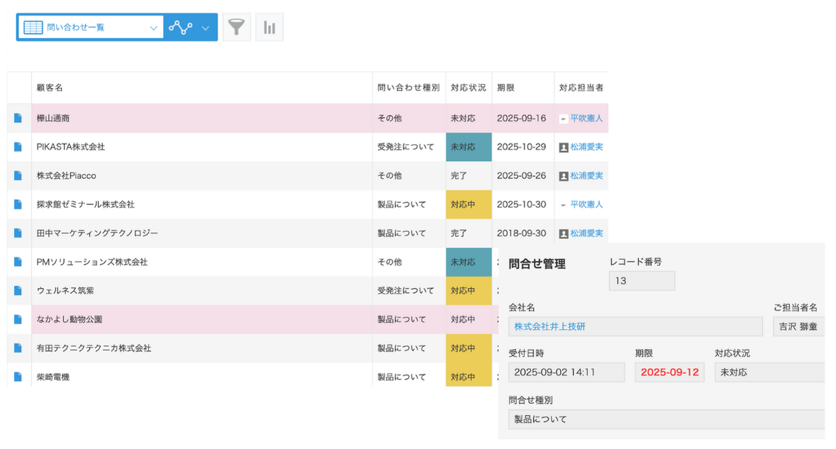 特定の条件に合わせて、表示するフィールドを切り替えることができます。レコード詳細画面、レコード追加画面、レコード編集画面、レコード印刷画面、それぞれの画面で表示するフィールドを設定できます。
