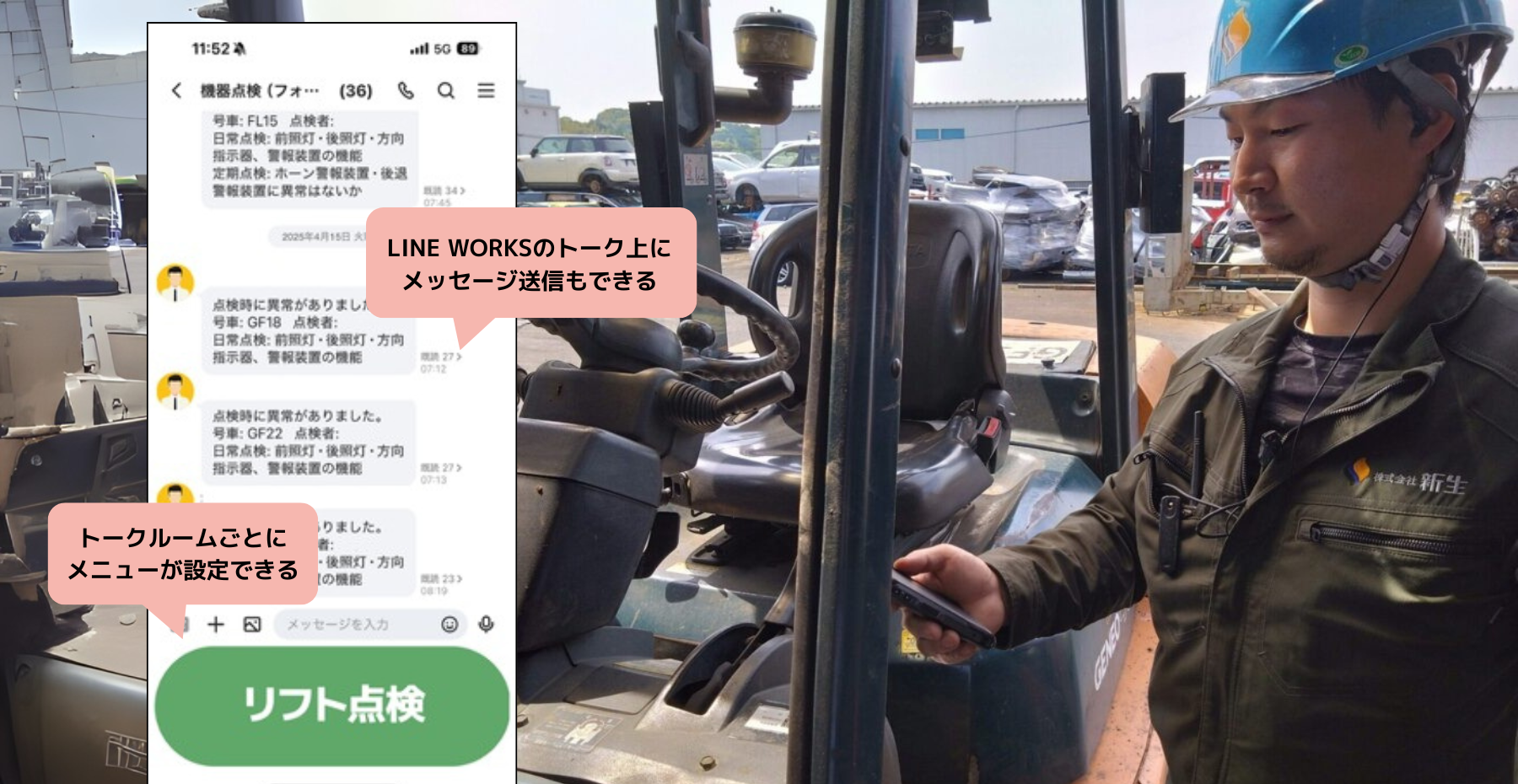LINE感覚で誰でも直感的に使えるため、現場にも自然に定着する仕組みです。