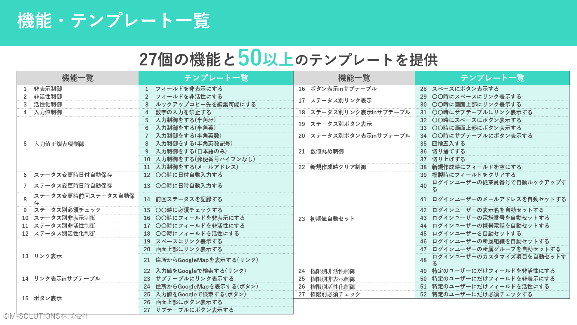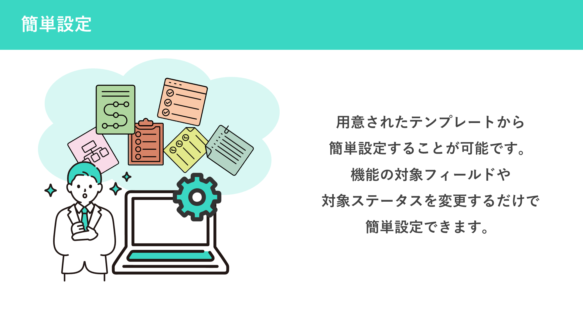 必須チェックや入力制限など、kintone標準では対応しにくい機能を、豊富なテンプレートから選ぶだけでノーコードで追加できるプラグインです。
