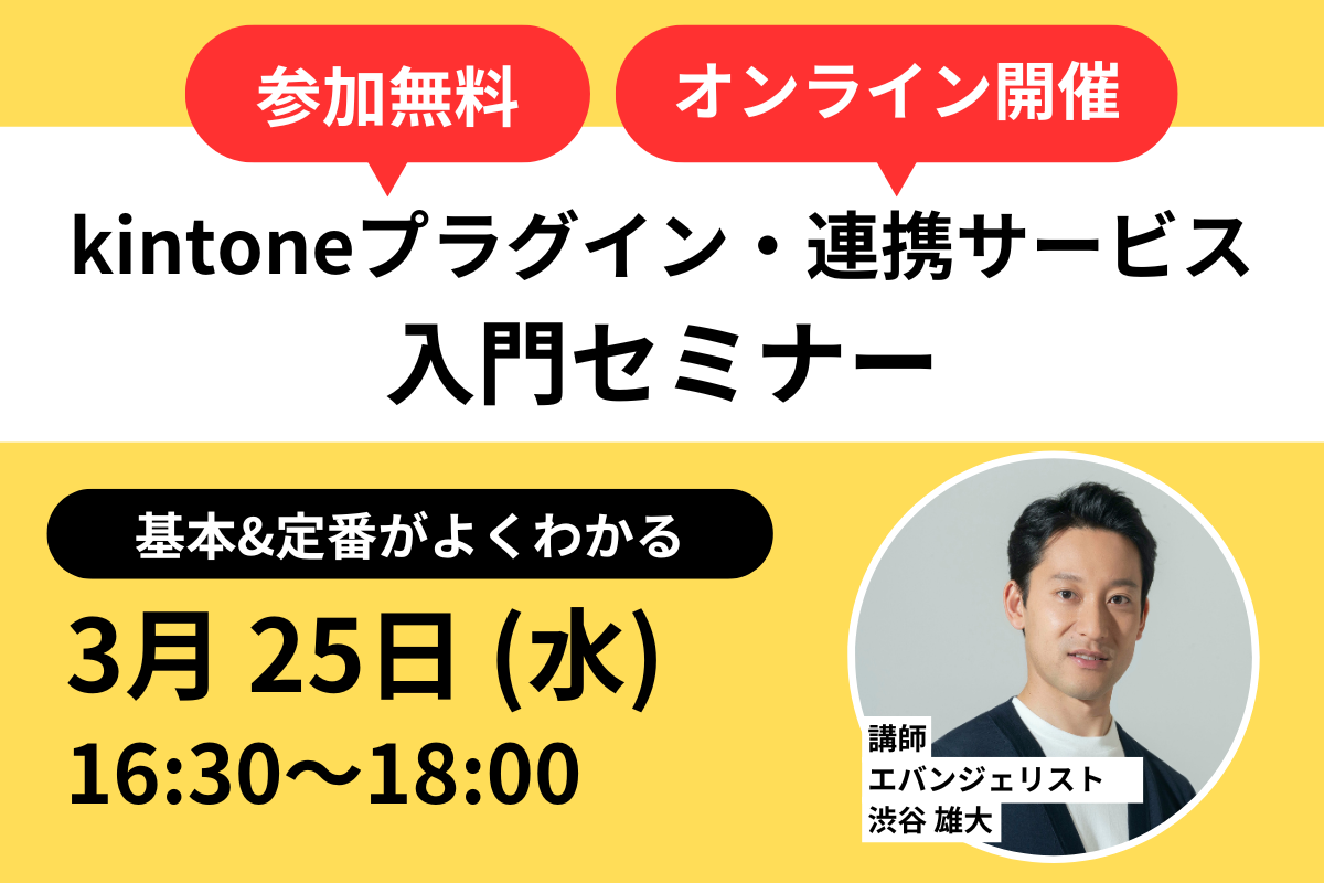 【参加無料】3月25日開催・kintoneプラグイン・連携サービス入門セミナー!基本&定番がよくわかる!2026-02-27 -