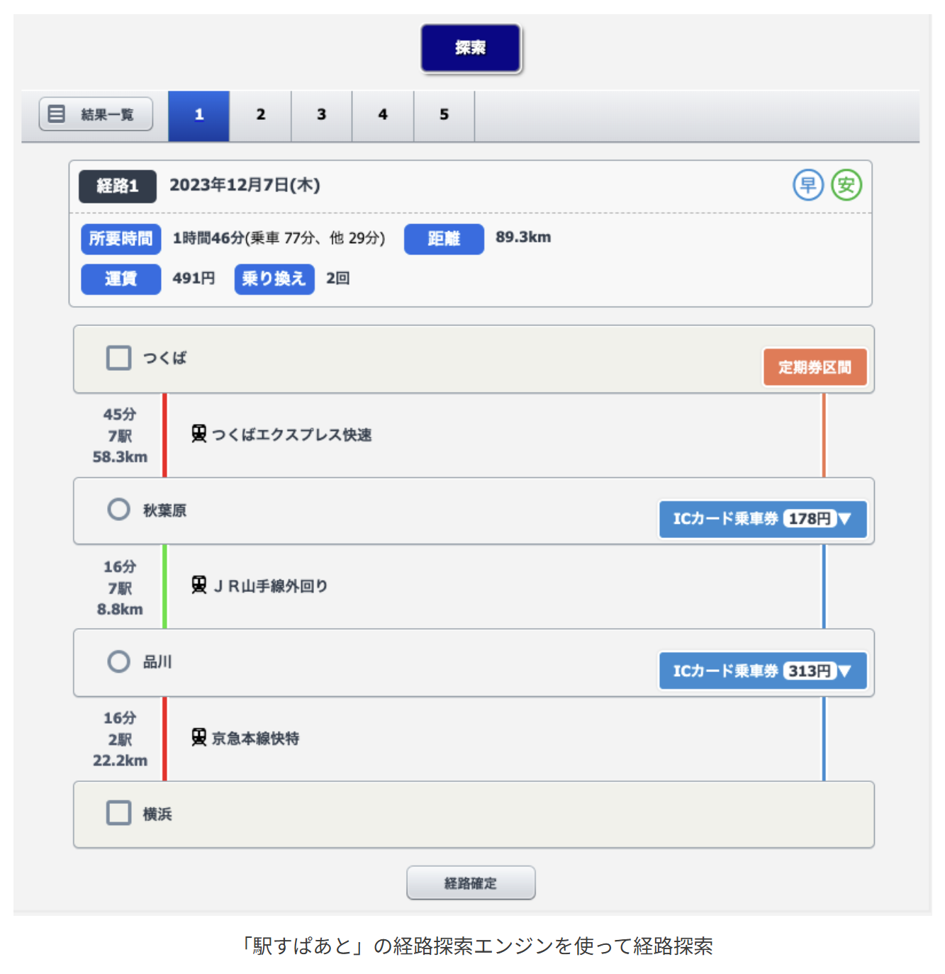 営業先への訪問が多い社員が、出発地・到着地・経由地を入力するだけで、正確な運賃と移動距離を自動取得。定期区間も控除され、申請ミスが減少。