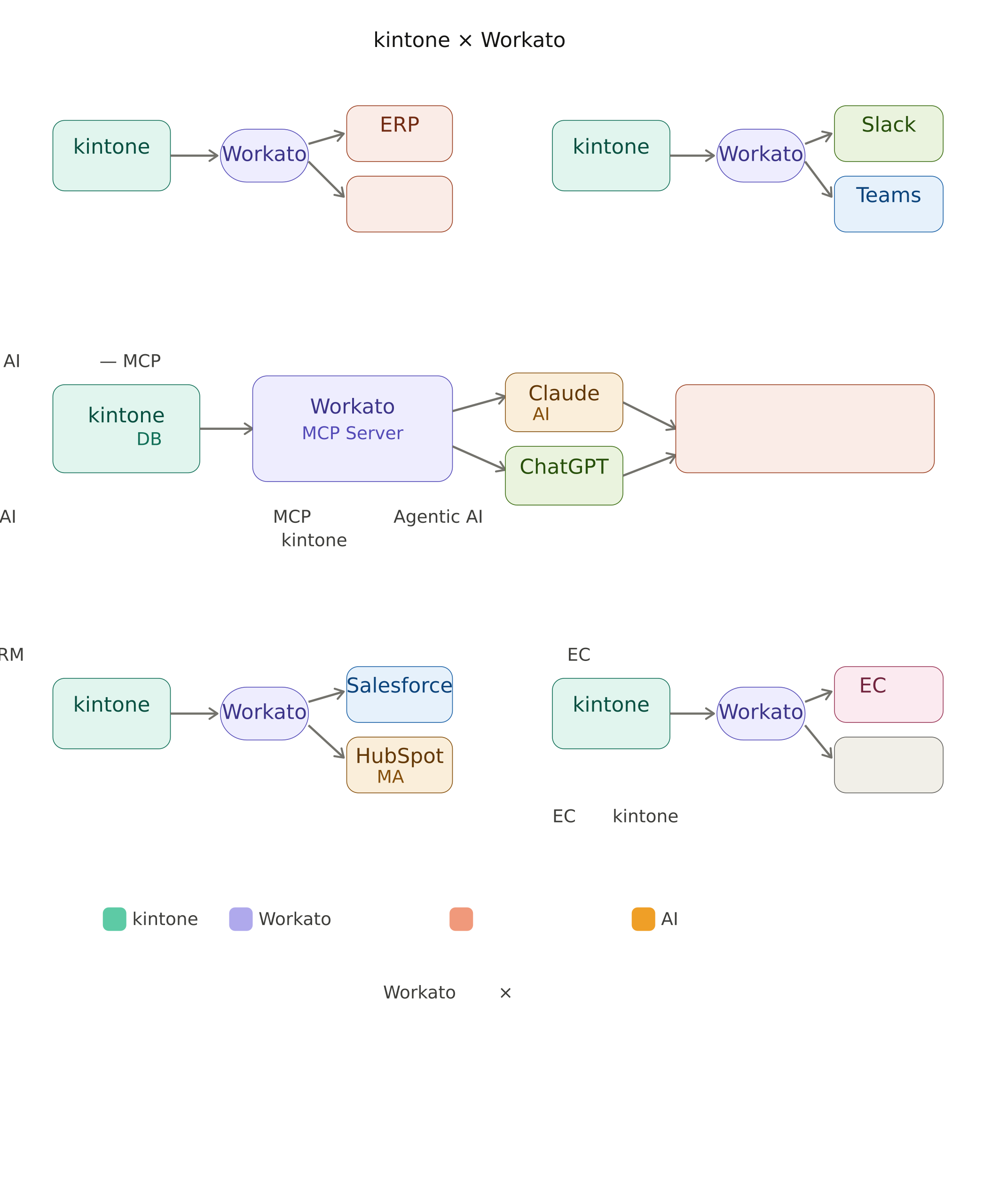 Workato独自のMCP Server機能により、kintoneのデータをClaude、ChatGPTなどのAIエージェントが直接参照・操作できる環境をノーコードで構築可能。Agentic AIの業務活用を一気に加速します。